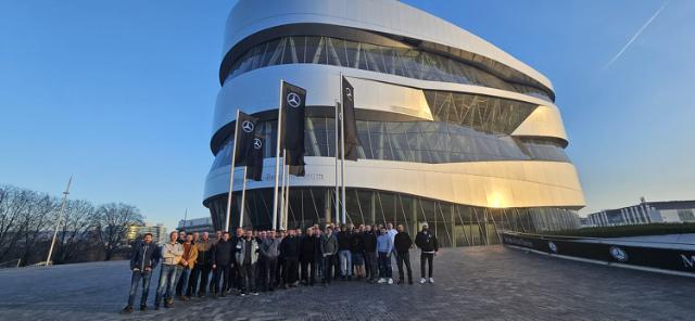 Hlavný odborný program odštartoval v utorok v sídle spoločnosti ISO-CHEMIE. Školenie bolo koncipované ako kombinácia teórie, praktických ukážok a detailnej prehliadky výroby. Účastníci mali možnosť vidieť celý proces výroby expanzných tesniacich pások – od vstupných materiálov až po finálne produkty – a zároveň si vyskúšať správne postupy priamo v praxi. Odborný program doplnila aj návšteva múzea Mercedes-Benz v Štuttgarte, ktorá bola pre mnohých silným zážitkom.