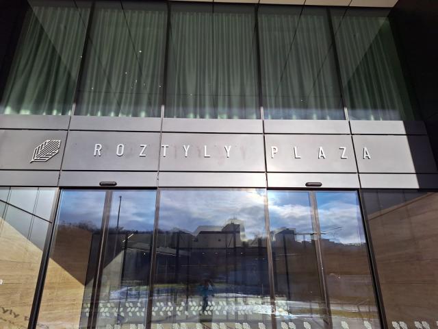 Administratívna budova Roztyly Plaza, ktorá sa nachádza v bezprostrednej blízkosti stanice metra a zároveň lesa, bola od začiatku navrhnutá s ohľadom na tento kontext. Rovné tvary ponúkajú vyšší percentuálny podiel kancelárskych priestorov s vysokou mierou využiteľnosti, zaoblené tvary v rohoch budovy zase vyjadrujú určitú samostatnosť a výnimočnosť budovy a dopĺňajú celkovú geometriu. Stredne vysoká budova (šesť nadzemných a jedno ustupujúce podlažie) sa tak zapája do blízkeho prírodného rámca a zároveň má mestskú formu s parterom, v ktorom sa nachádzajú potrebné obchody, služby a reštaurácie.