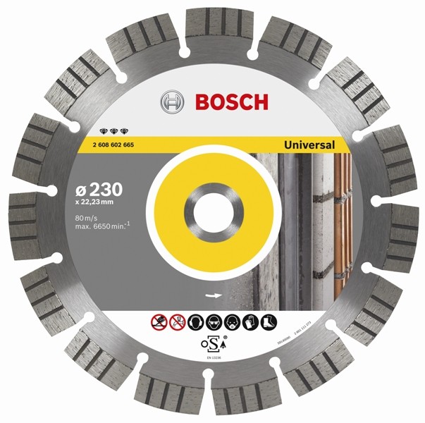 Diamantový rezný kotúč na betón, betón armovaný, drevovláknitú dosku s cementovým spojivom, maltu, omietku, pálené tehly, škridlicu, terazzo, vápenno-pieskovité tehly,vymývaný betón a iné stavebné materiály.Výška segmentu 15mm.