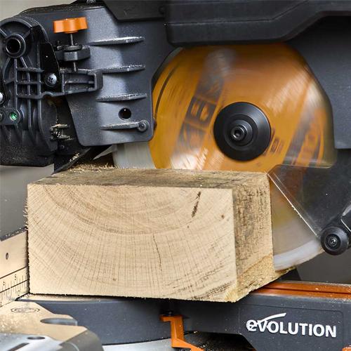 R255SMS-DB-Li je mimoriadne výkonná, bezuhlíková, akumulátorová pokosová píla s dvojitou batériou (36 V), od spoločnosti EVOLUTION s technológiou rezania Multi-Material.