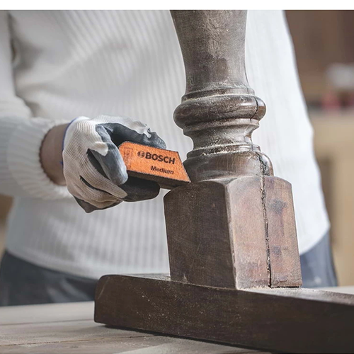 Brúsenie dreva aj laku a dlhá životnosť! Niekedy sa ručnému brúseniu nič nevyrovná. Problémom je, že bežné brúsne papiere sa pri brúsení kriviek a hrán rýchlo opotrebujú, zanesú alebo polámu. Staré riešenie spočívalo v nákupe veľkého množstva brúsnych papierov, čo viedlo k vysokej spotrebe a plytvaniu. Novým riešením sú brúsne peny s technológiou Bosch Surface Structure. Hranaté brúsne huby sú ideálne na brúsenie rovných povrchov a 90° hrán. Brúsne huby Bosch EXPERT sú revolúciou v ručnom brúsení. Akonáhle to raz vyskúšate, už nebudete chcieť meniť.