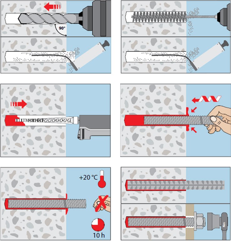 Dvojzložková chemická injektážna zmes pre vlepovanie betonárskej výstuže a závitových prvkov do netrhlinových a trhlinových betónových podkladov. Je veľmi vhodná pre kotvenie betonárskej výstuže vo väčších hĺbkach.