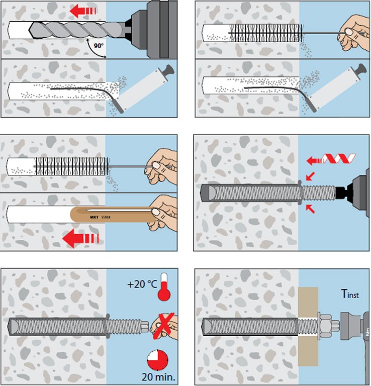 Svorník MKT V v kombinácií s chemickou zmesou slúži na kotvenie s vysokými únosnosťami