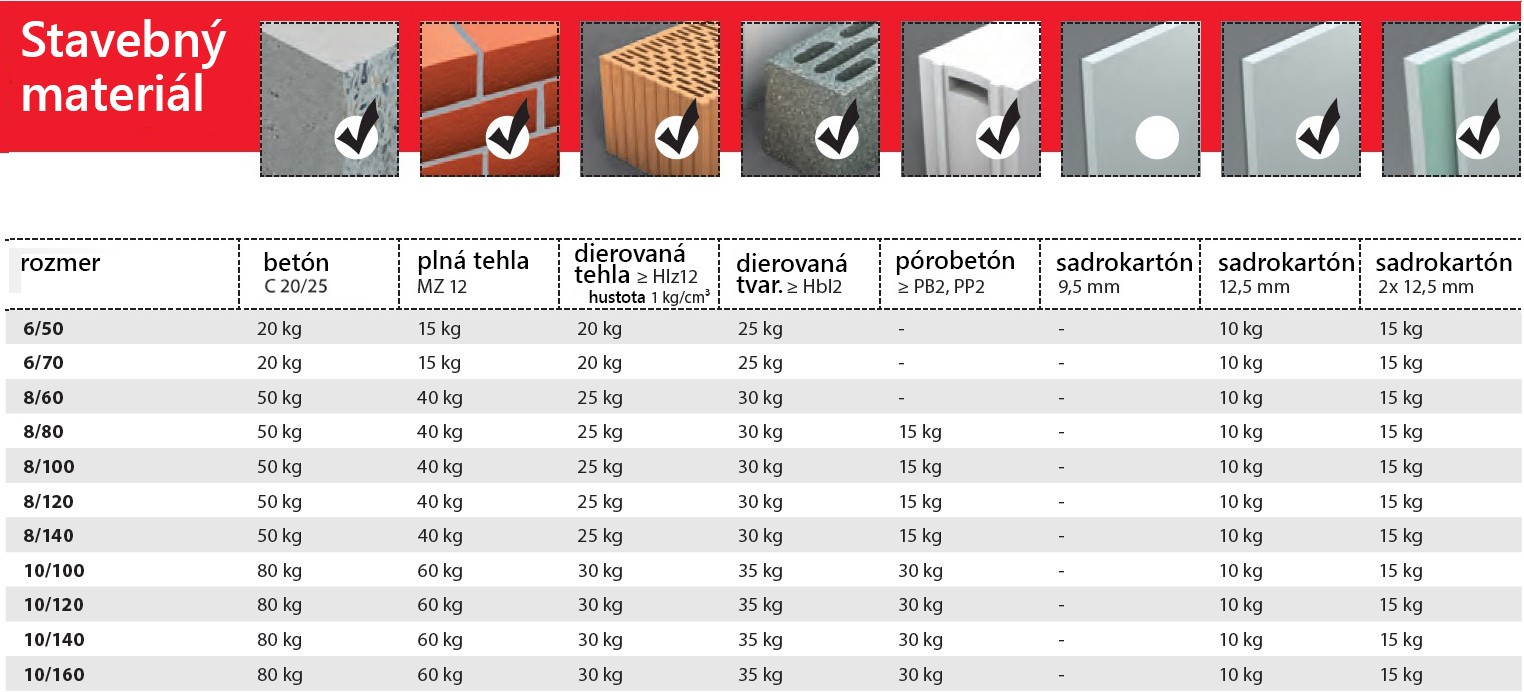 - UPOZORNENIE: NEVŔTAJTE DO PÓROBETÓNU, NATĹKAJTE! POUŽITIE V PÓROBETÓNE OD ROZMERU 8/80mm A VIAC!