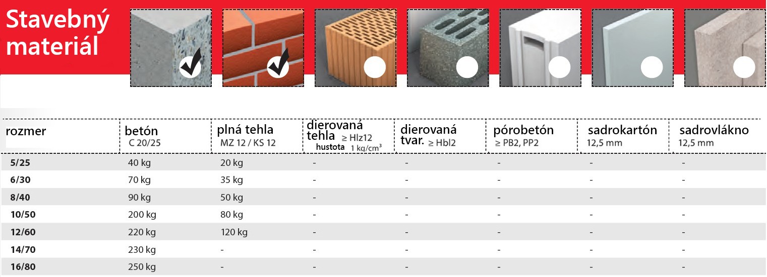 - rozpínanie hmoždinky zabezpečuje vysokú pevnosť uchytenia