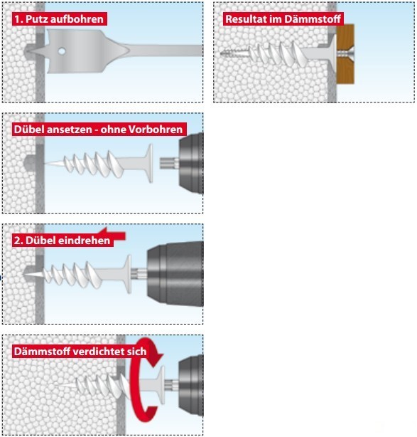 - do neomietnutých izolačných materiálov sa hmoždinka zaskrutkuje kľúčom TORX TX40