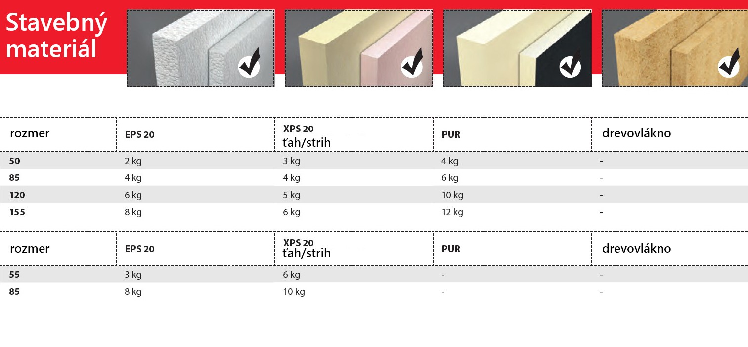- možnosť vzájomného spájania tepelnoizolačných dosiek
