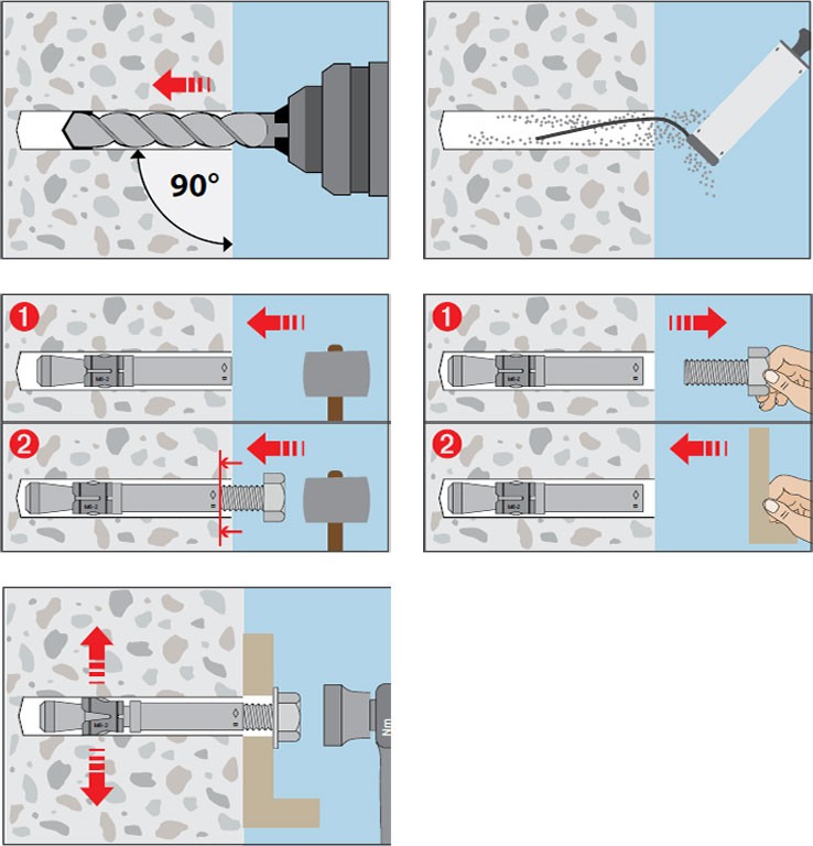 - kotvenie nosných oceľových konštrukcií, konzol a stĺpikov, technologických, signalizačných a zabezpečovacích zariadení atď.