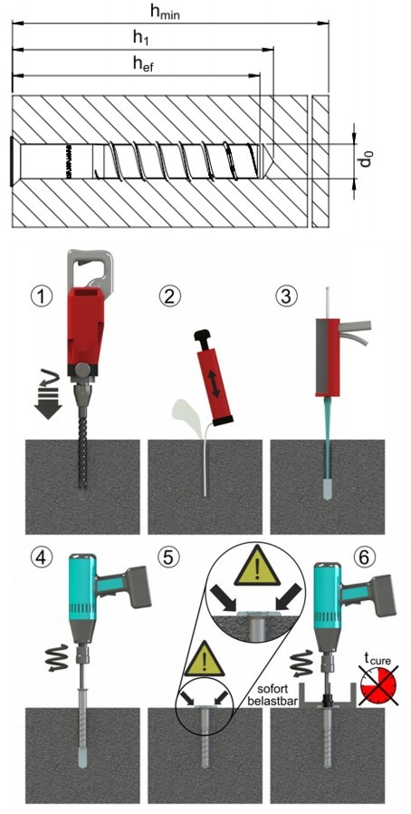 • pred inštaláciou skrutky do pripravenej diery natlačte chemickú kotviacu zmes MKT VMUplus, alebo ALLFIXplus
