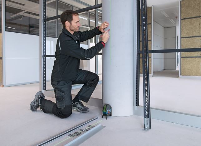 - Horizontálne a vertikálne laserové línie a dva vycentrované body kolmice s optimálnou viditeľnosťou