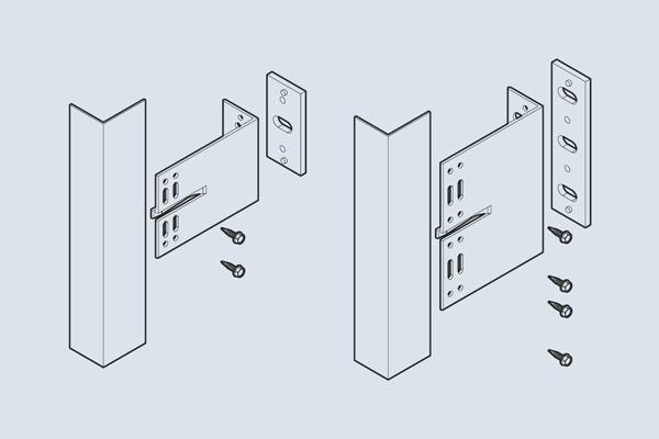 - Zabudovaná drážka umožňuje 38 mm nastavenie ukotvenia nosných L- a T-profilov
