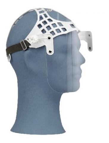 - Ochranný štít z číreho PMMA s hlavovým nosičom