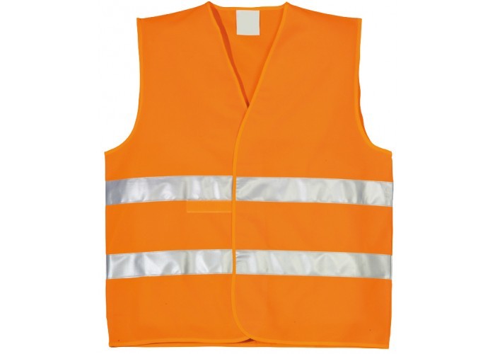 Signálna vesta s reflexnými pásmi v oranžovej a zelenej farbe.