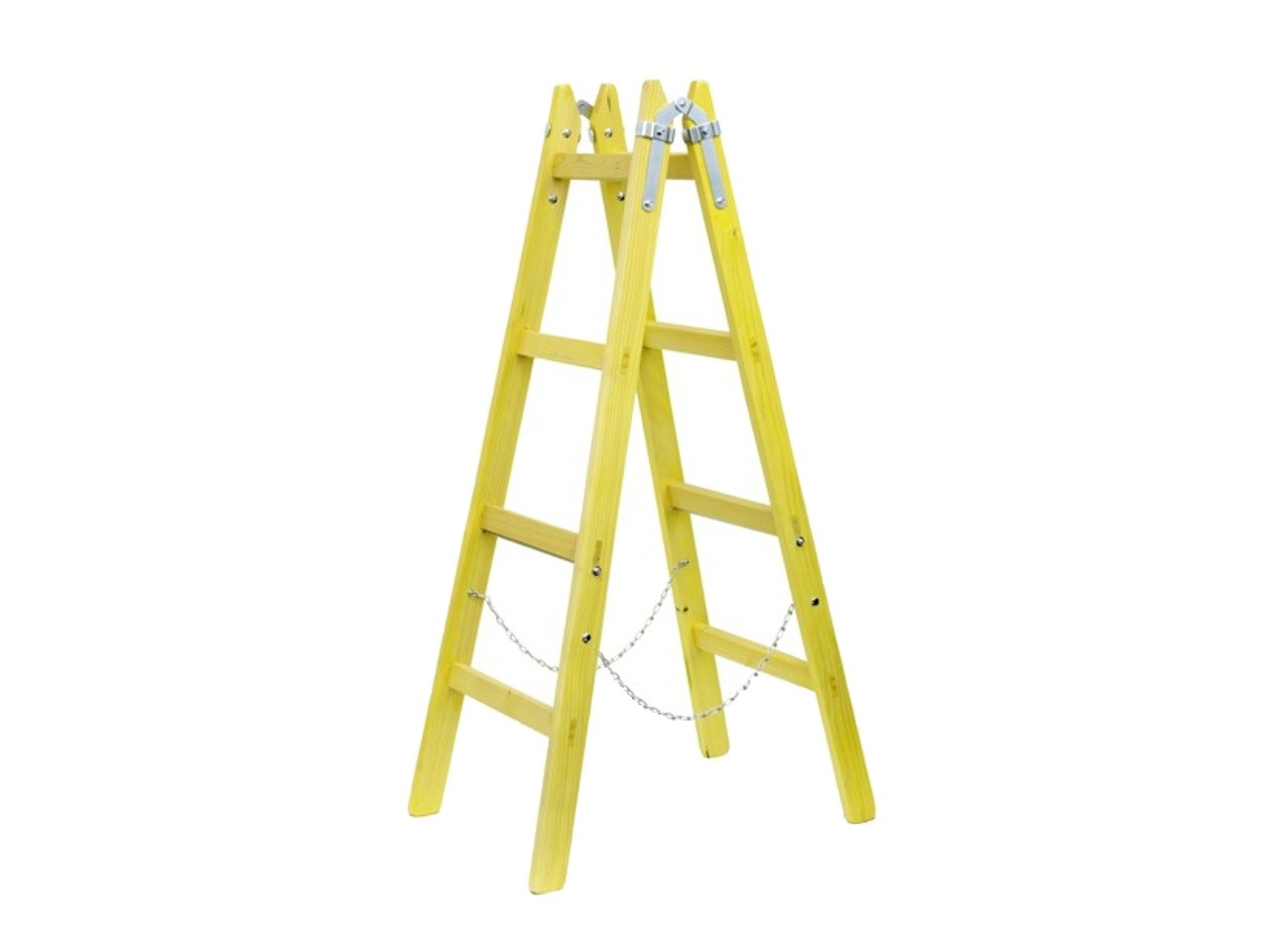 Tradičný drevený morený rebrík spojený pántami a poistnou retiazkou v rôznych variantách dĺžky a počtom schodov.