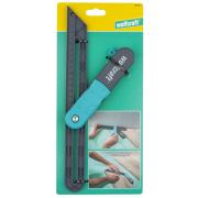 Praktický pomocník pri kladení podláh a výrobe nábytku na snímanie a prenášanie uhlov a na použitie ako značkovač. Výklopný doraz na nasadenie na obrobok na ľahké vyznačenie uhlov alebo paralelných čiar. Stupnica na pohyblivom ramene na vyznačenie paralelných čiar. Uhlomer je inteligentným riešením na pohodlné zosnímanie uhlov a následné prenesenie na obrobok – ideálnym pri kladení podláh alebo výrobe nábytku. V prvom kroku posuňte obe plastové ramená do rohu steny a vyrovnajte ich pozdĺž stien. Pomocou aretačnej páky zafixujte polohu. Páka je vyhotovená tak, aby ste ňou mohli aj v úzkych pracovných oblastiach dobre manipulovať iba jednou rukou z oboch strán. V ďalšom kroku umiestnite uhlomer na obrobok a vyznačte uhol. Uhlomer sa vynikajúco hodí aj na použitie ako značkovač (naznačenie paralelných čiar). Pomôže vám pritom stupnica na pohyblivom ramene a vodiaci otvor pre ceruzku. Jednoducho priložte doraz, zastrčte ceruzku a veďte uhlomer cez obrobok.