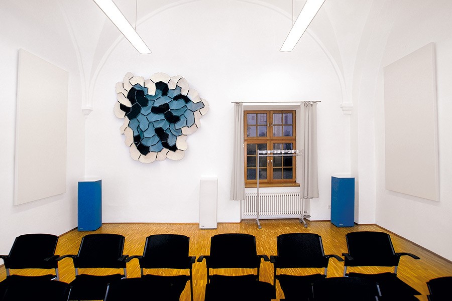 Akustické teleso z melamínovej živice na akustický útlm v interiéri