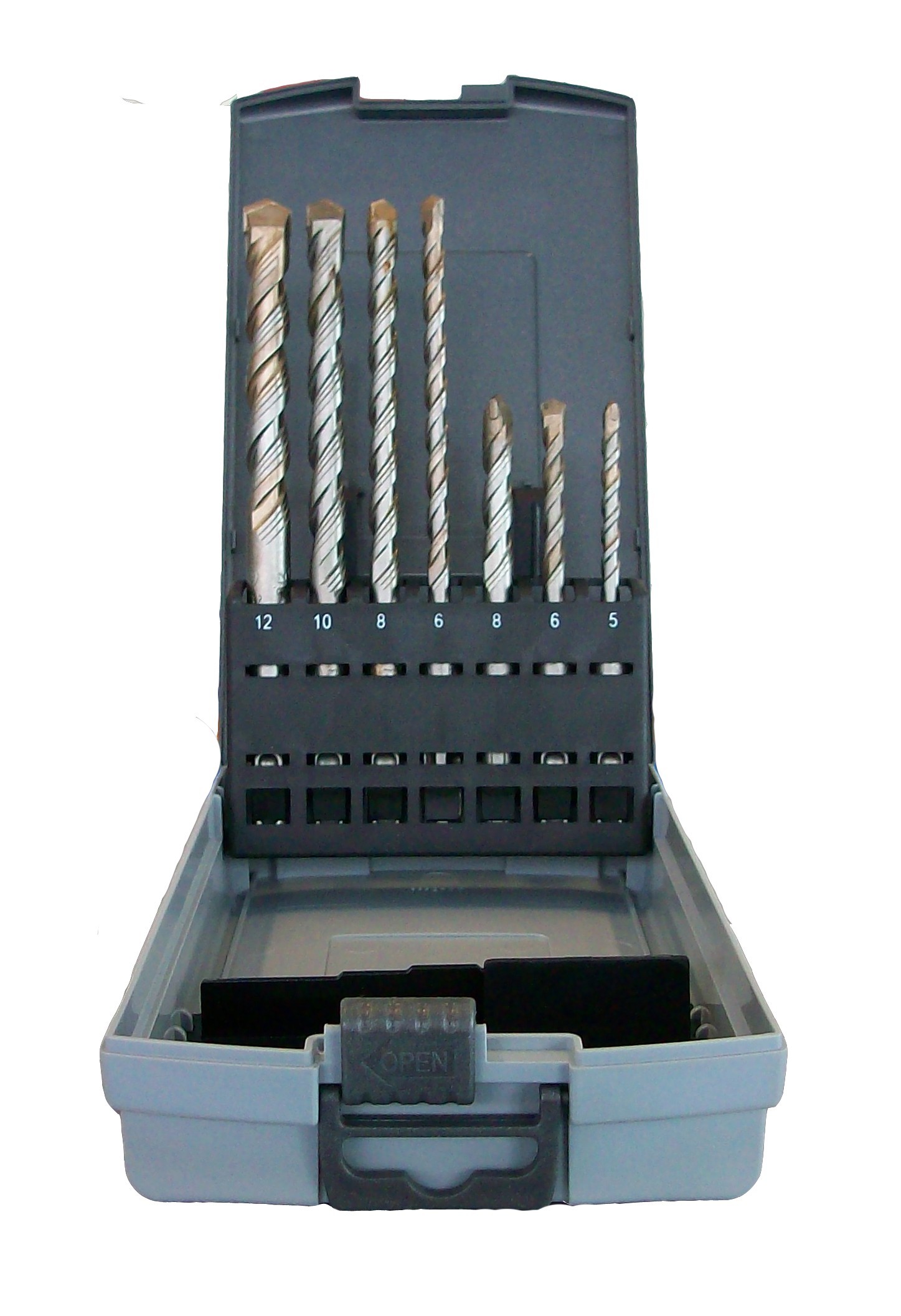 7 ks sada príklepových vrtákov s uchytením SDS plus. odporúčané do betónu, tehly, kameňa a iných stavebných metriálov.